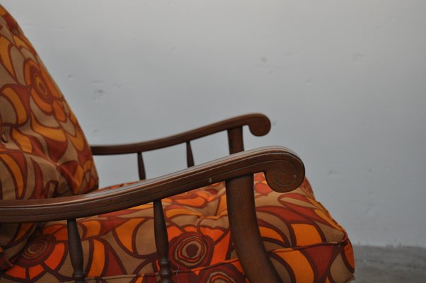 Vintage Italian Wooden Rocking Chair With Pillows In Original Fabric 1970s For Sale At Pamono