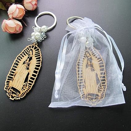 Amazon Com Llavero De Madera Con Diseno De Nuestra Senora De Guadalupe Cortada Con Laser 12 Piezas Recuerdo De Bautizo Para Nino O Nina Health Personal Care