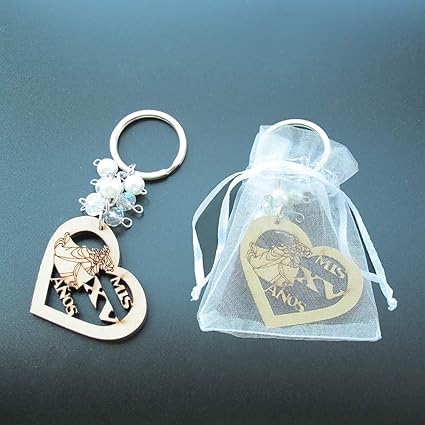 Amazon Com Llavero De 15 Piezas Con Diseno De Madera De Quinceanera Recuerdos Para Nina Con Bolsas De Organza Beauty