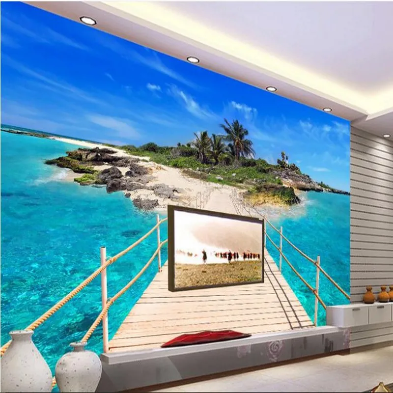 Wellyu Murales Personalizados De Gran Escala Hawai Isla Pequena Puente De Madera Fondo De Tv 3d Papel Tapiz De Pared Papel De Parede De Paredetv Background Aliexpress