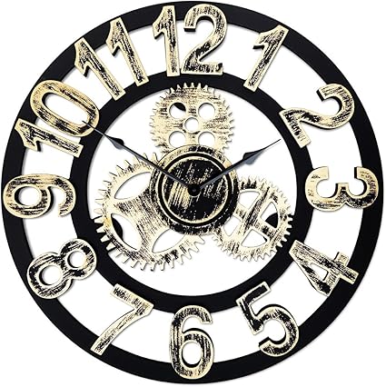 Amazon Com Top Race 16 Inch Round Wall Clock Antique Handmade Wooden Vintage 3d Gear Design By Chevy K Gold With Numbers Toys Games