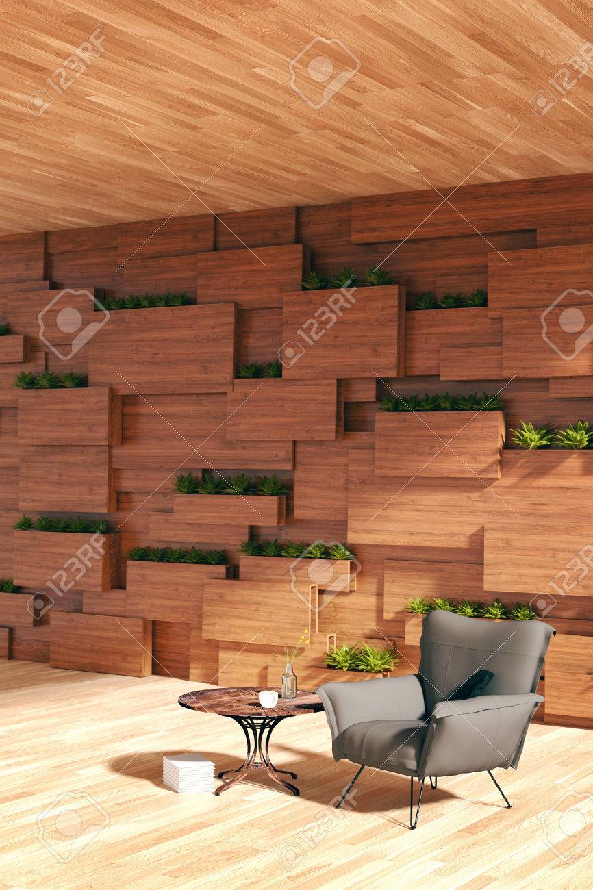 Wall In Modern Interior With Wooden Blocks And Vertical Garden Stock Photo Picture And Royalty Free Image Image 74759720