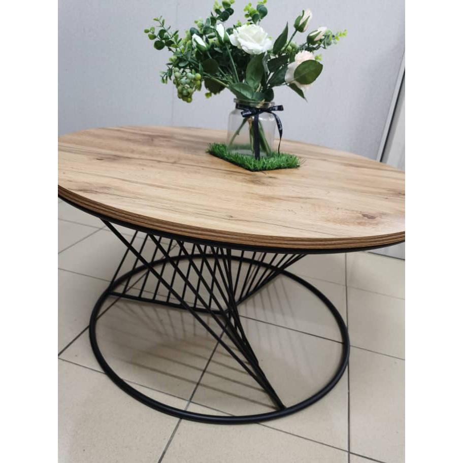Modern Design Round Coffee Table With Metal Leg Industrial Style Wooden Metal Ready To Use Ct 2281 Shopee Malaysia
