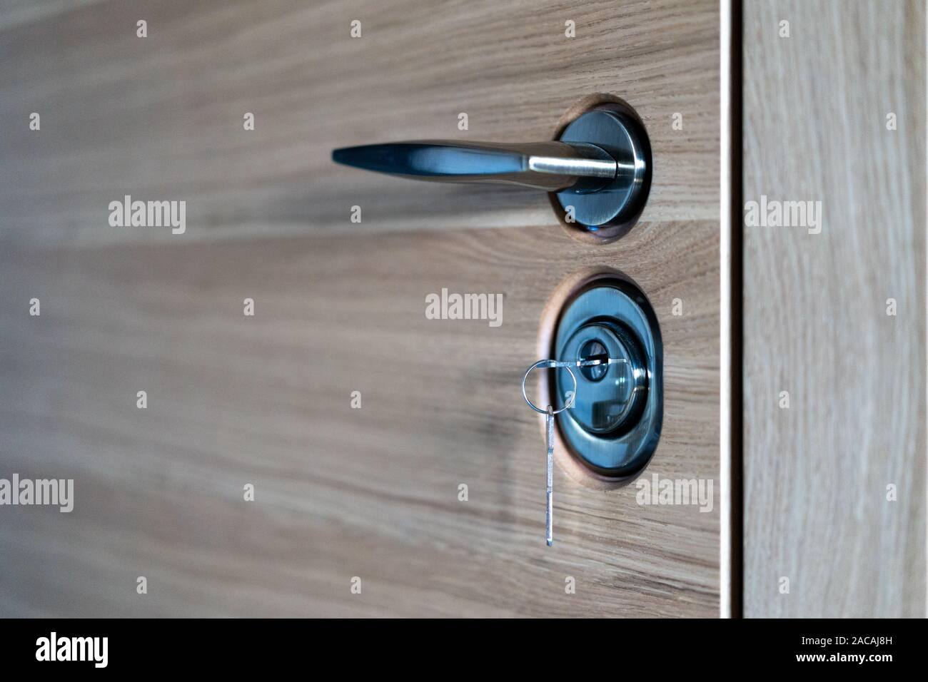 Door Lock With Key And Handle Close Up Beautiful Modern Wooden Entrance Door To The Apartment Stock Photo Alamy