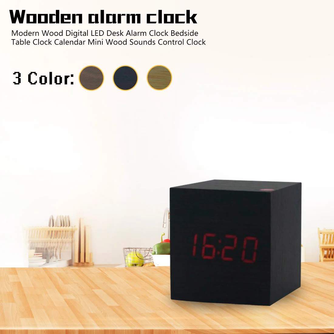 Mini Wood Sounds Control Clock New Modern Wood Digital Led Desk Alarm Clock Bedside Table Clock Calendar Table Decor Alarm Clocks Aliexpress