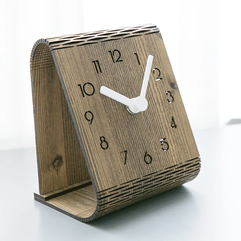 Flex Time Clock Sleek Minimalist Wood Table Clock Custom Living Hinge Wooden Desk Clock Modern Simple Wooden Clock Living Hinge Wood Clock Design Clock