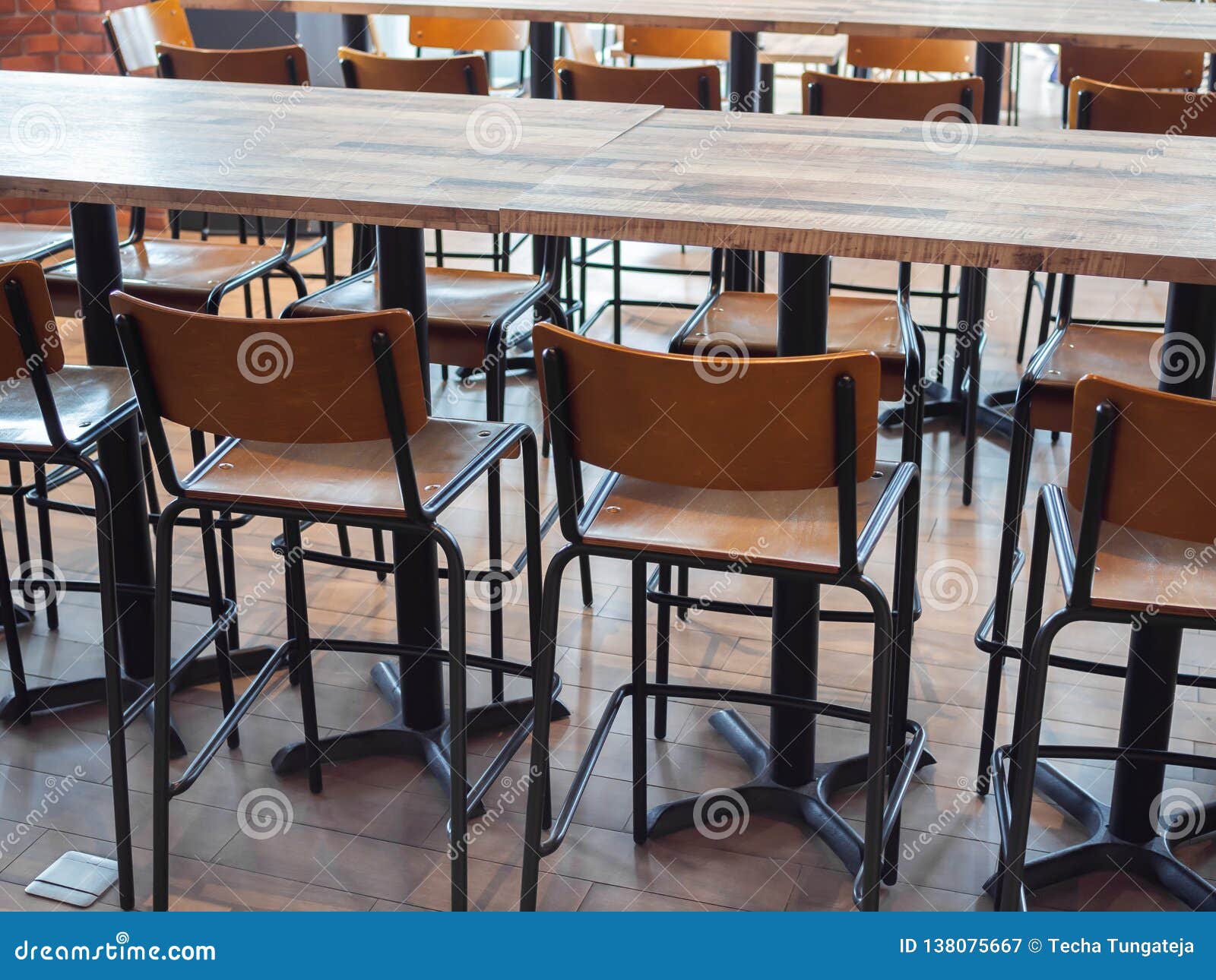 Row Of Wooden Bar Stools And Wooden Table Stock Image Image Of Lifestyle Lean 138075667