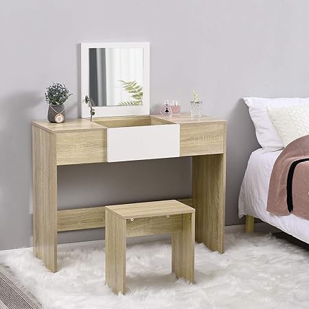 Modern Dressing Table Set With Flip Up Mirror Wood Makeup Table Vanity Console Dresser With Stool Bedroom Furniture Girls Gift White And Natural Amazon Co Uk Kitchen Home
