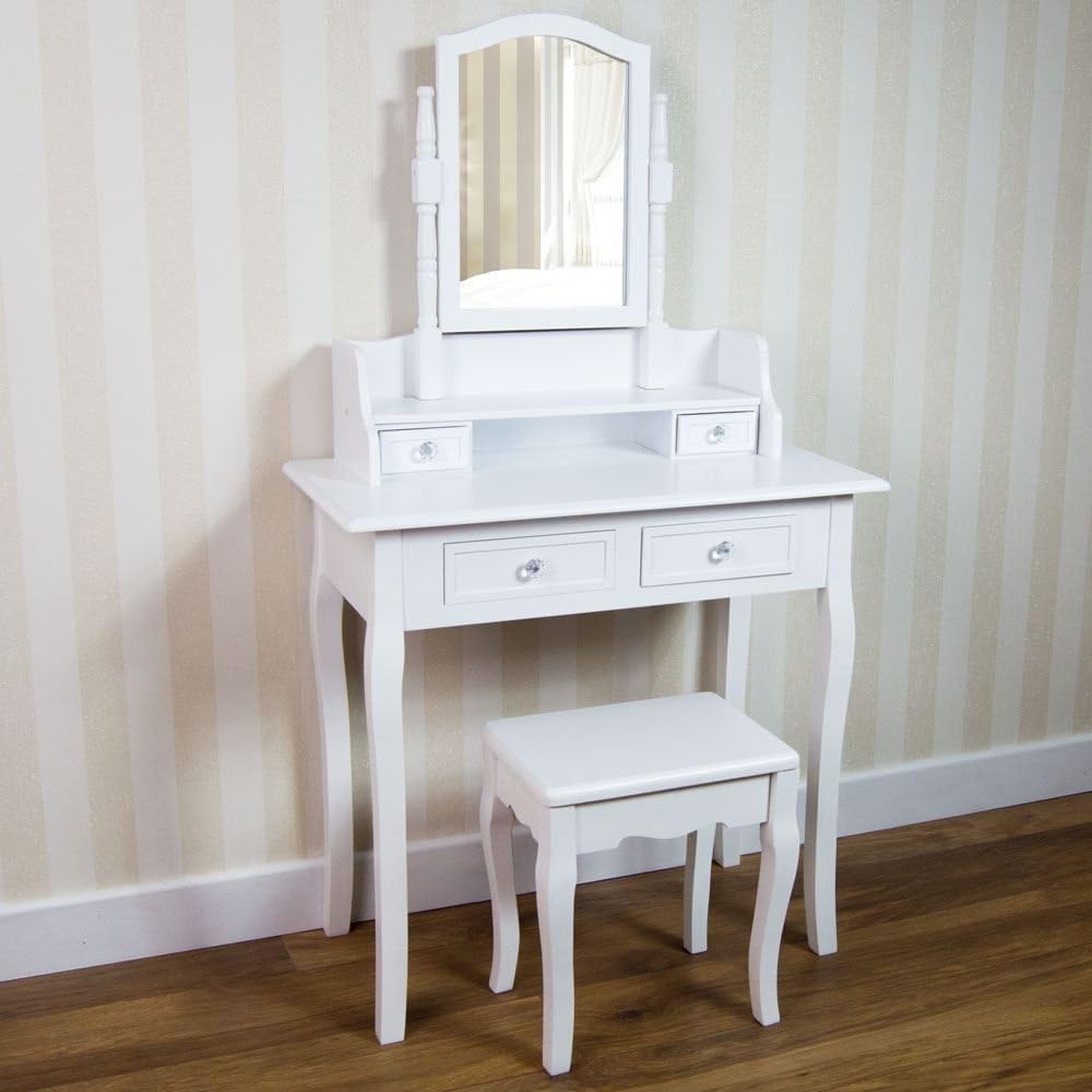 Vida Designs Nishano Dressing Table With Stool 4 Drawer Adjustable Mirror Bedroom Set Makeup Cosmetics Dresser Furniture White Amazon Co Uk Kitchen Home