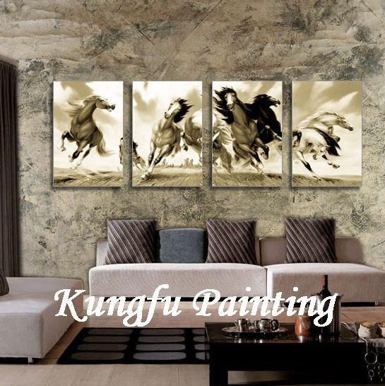 2020 Handmade Running Horses Painting On Canvas Hanging On Wall Modern Wood Wall Art Panel Art Animal Artwork Living Room Decoration From Kungfuart 66 32 Dhgate Com