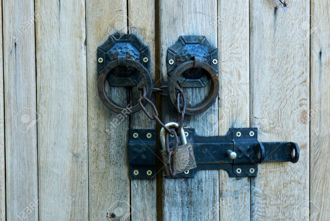 Old Wooden Gate With Padlocks Retro Design Stock Photo Picture And Royalty Free Image Image 152659493