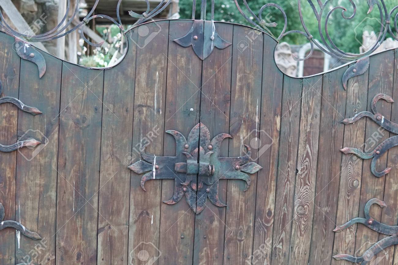 Ancient Rustic Old Wooden Gate With Decorations Retro Design Stock Photo Picture And Royalty Free Image Image 103789477