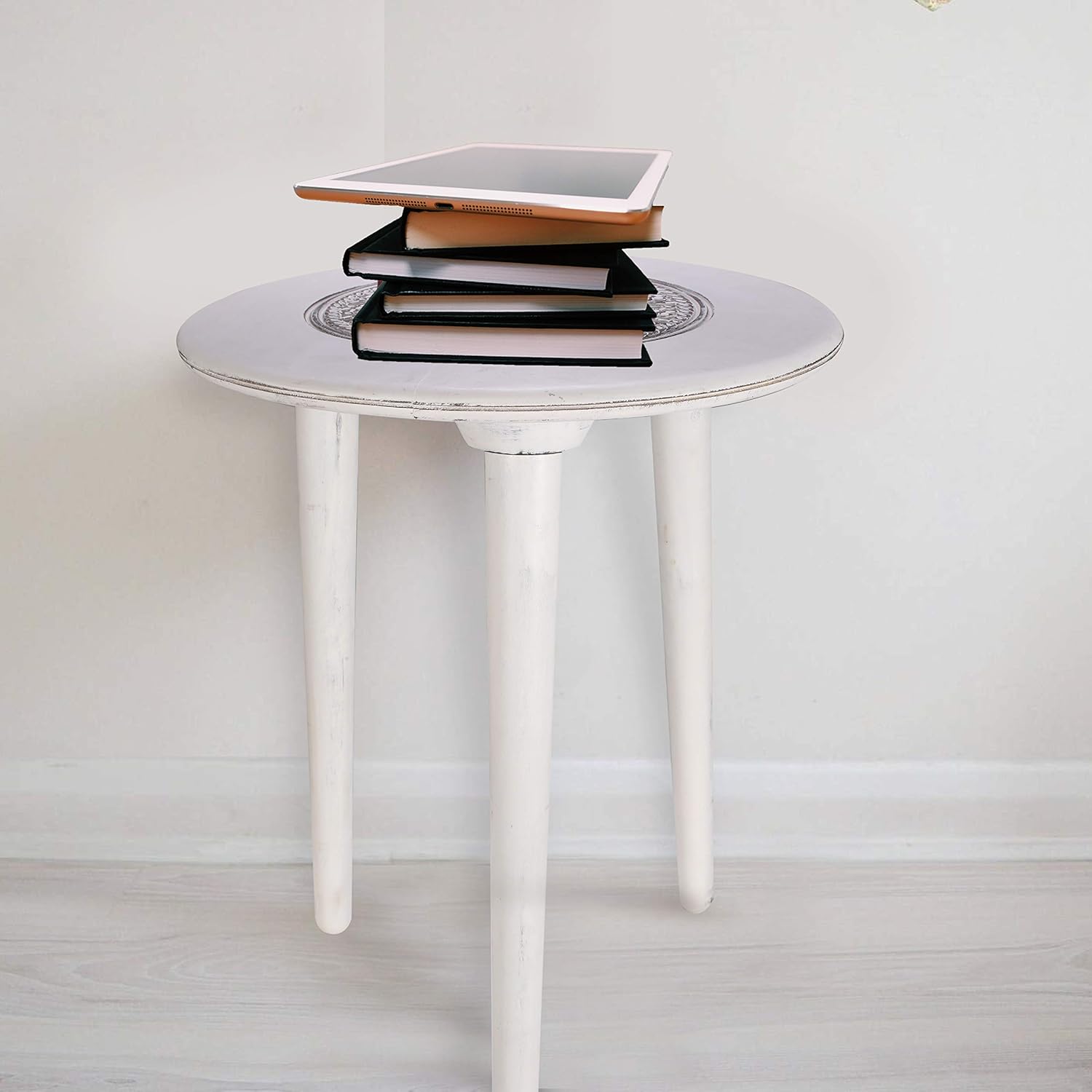Amazon Com Rustic Wooden Table With 3 Legs Pillars White Night Stands For Bedrooms Bedside Table Coffee Table Mid Century Modern Desk Side Table Round Coffee Table 18x22 Inch White Kitchen Dining