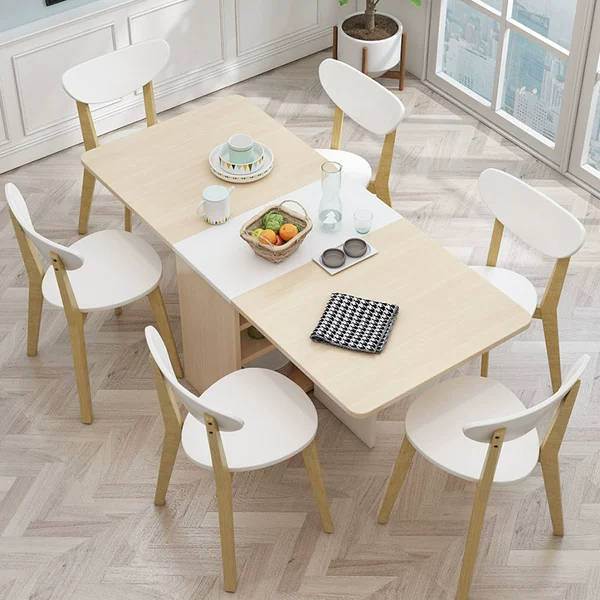 China Wooden Furniture Dining Table And Chair Combination Of Solid Wood Creative Retractable Modern Simple Nordic Long Family Cafe Dining Chair China Table