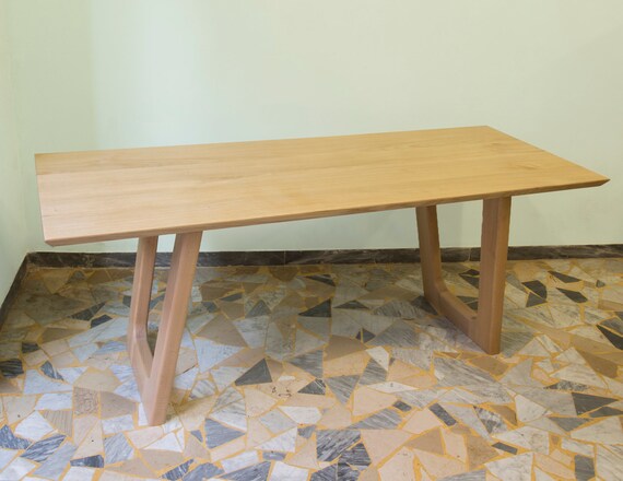 Modern Style Dining Table In Chestnut Solid Wood Minimal Etsy