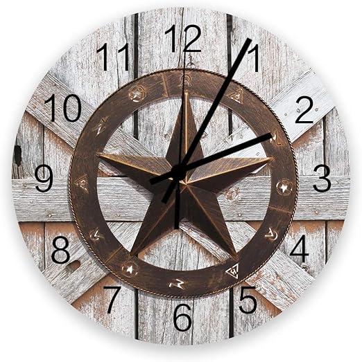 Amazon Com Modern Wall Clock Decor Rustic Western Texas Barn Stars Large Wall Clocks Silent For Living Room Bathroom Kitchen Battery Operated Indoor Outdoor Wood Round Wall Decorative 12inch Wooden Board Home Kitchen