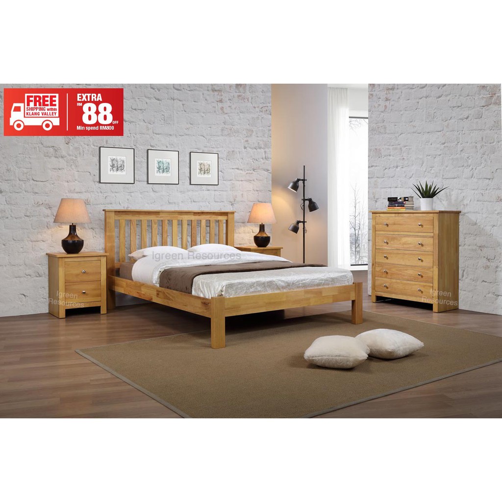 Solid Wood Megan Single Super Single Queen King Wooden Bed Frame Export Quality Direct Factory Shopee Malaysia