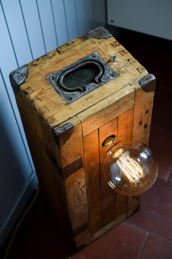 Box Vintage Wooden Lamp Etsy