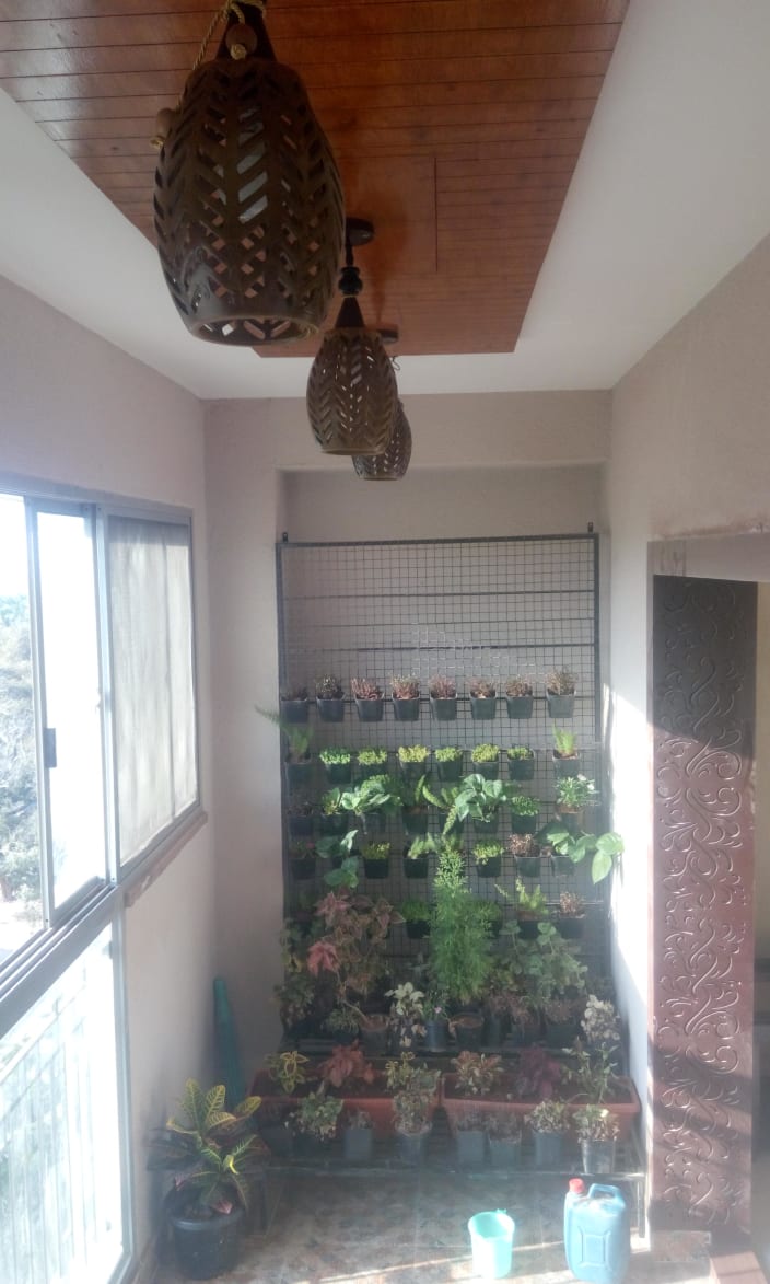 Sun Kissed Balcony With Sliding Glass Window For Natural Light And A Wooden False Ceiling For Decorative Light By Vinod