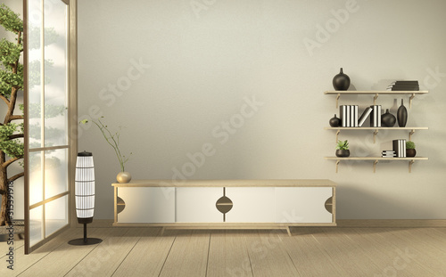 Cabinet Wooden In Modern Living Room Japan Style On White Wall Background 3d Rendering Wall Mural Interior Design
