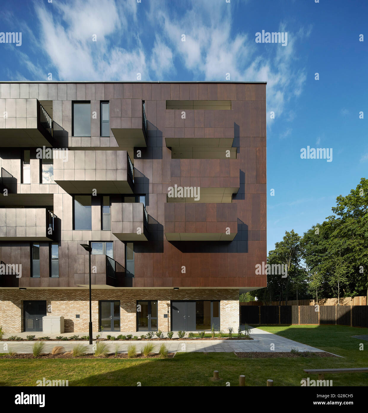 Partial Front Elevation Of Wooden Veneer Facade Alpine Place Brent Stock Photo Alamy