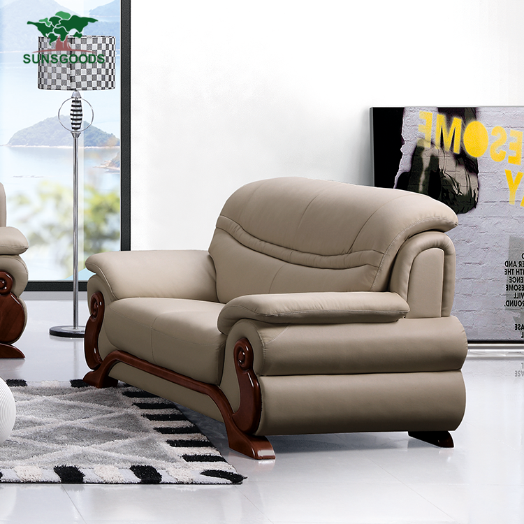 China Hot Sale Office Furniture Teak Wood Genuine Leather Sofa Hy S945 China Office Furniture Leather Office Sofa