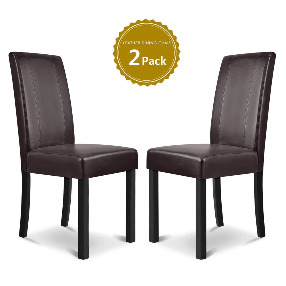 Set Of 2 Faux Leather Dining Chairs High Back Chair With Solid Wooden Legs For Home Commercial Restaurants Brown Buy Online In Gibraltar At Desertcart