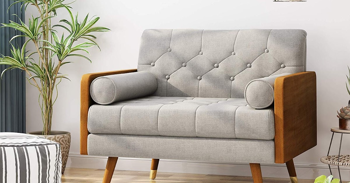 Amazon Com Loveseat Furniture Solid Wood Frame With Dark Oak Finish Modern Sofa The Couch Is Contemporary Living Room Office Furniture Featuring Soft Rust Colored Microfiber Fabric Elegant Comfortable Durable Sofas And Dorm Room