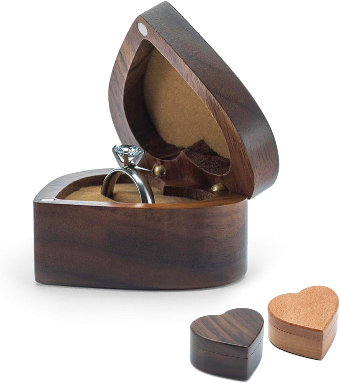 Amazon Com Wislist Heart Shaped Walnut Wood Ring Box Velvet Soft Interior Holder Jewelry Chest Organizer Earrings Coin Jewelry Wooden Presentation Box Case For Proposal Engagement Wedding Ceremony Birthday Gift Home Kitchen